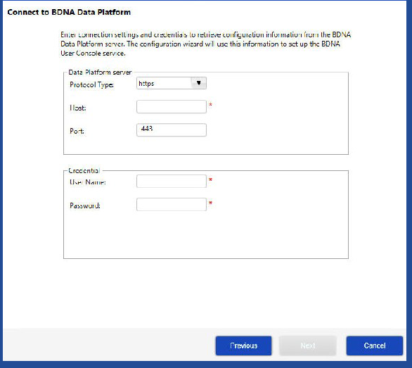 • The information you provide in this screen enables the connection between the Data Platform server and the User Console server.