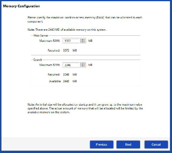 10. Specify the maximum memory ( Maximum RAM ) that can be allocated to the Data Platform User Console components.