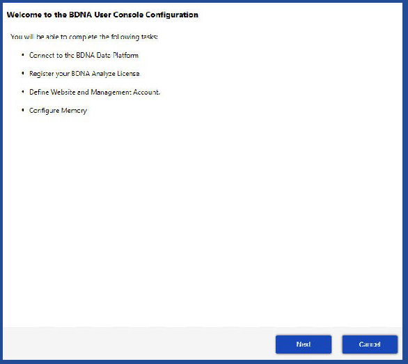 • The Welcome screen opens, showing the tasks that you will complete during the configuration process.